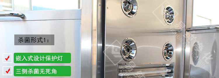 1、內(nèi)部安裝嵌入式紫外線殺菌燈,通過紫外波長(zhǎng)為254微米的光波對(duì)室內(nèi)的微生物細(xì)菌進(jìn)行殺菌,從而抑制細(xì)菌的增長(zhǎng)和繁衍。由于紫外線對(duì)人體有一定的傷害,故人員在室內(nèi)的時(shí)候不適合殺菌,一般我們是采用定時(shí)裝置,在無人員的情況下進(jìn)行殺菌。在控制系統(tǒng)里面安裝定時(shí)計(jì)時(shí)裝置,自動(dòng)啟動(dòng)殺菌系統(tǒng)。