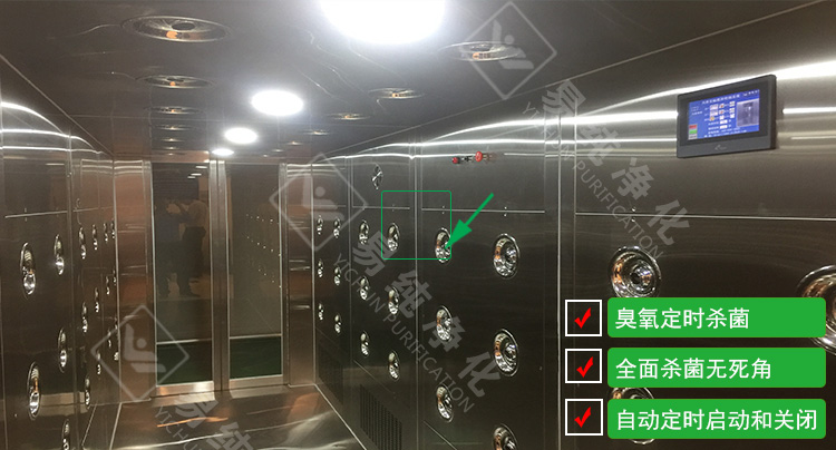2、內(nèi)置微型臭氧滅菌:由于紫外線殺菌有一定的局限性及死角,其風(fēng)淋靜壓廂內(nèi)部的殺菌效果較差,我們?cè)陲L(fēng)淋內(nèi)部嵌入了微型臭氧發(fā)生器,同樣采用在控制系統(tǒng)里面安裝定時(shí)計(jì)時(shí)裝置,自動(dòng)啟動(dòng)殺菌系統(tǒng)。