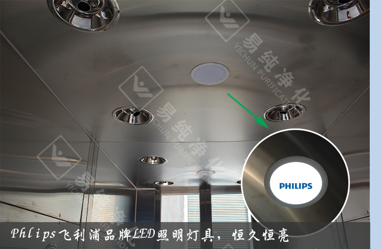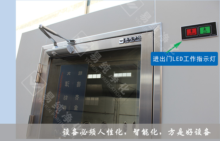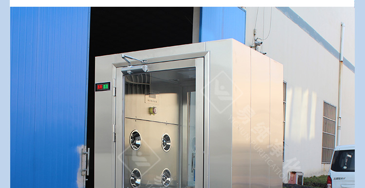3、采用風(fēng)機(jī)高低檔轉(zhuǎn)速要求對(duì)內(nèi)部空氣進(jìn)行自動(dòng)循環(huán)自凈。當(dāng)有人員進(jìn)入風(fēng)淋內(nèi)部時(shí),風(fēng)淋風(fēng)機(jī)啟動(dòng),風(fēng)速一般達(dá)到25-28米/秒左右,當(dāng)人員出風(fēng)淋后,風(fēng)淋風(fēng)機(jī)低速運(yùn)轉(zhuǎn),在設(shè)定時(shí)間到達(dá)后即停止。這樣的反復(fù)自凈,將內(nèi)部空氣不斷循環(huán)更新,以保證室內(nèi)空氣的新鮮及潔凈度。