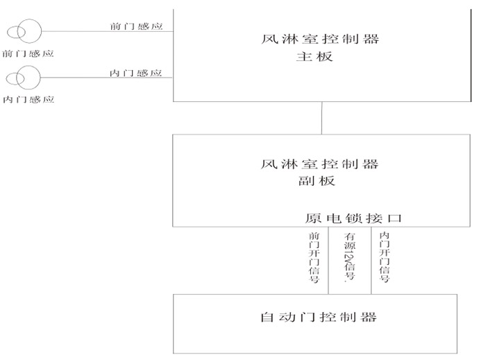 3.4 如有人在風(fēng)淋室,但不在系統(tǒng)感應(yīng)區(qū)內(nèi),系統(tǒng)即轉(zhuǎn)入3.3,當(dāng)系統(tǒng)一檢測(cè)到有人時(shí),系統(tǒng)即轉(zhuǎn)入風(fēng)淋過(guò)程3.2。