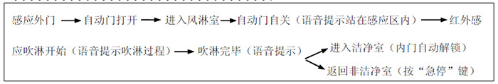 a.在內(nèi)外門(mén)關(guān)閉時(shí),按下手動(dòng)按鍵,系統(tǒng)即轉(zhuǎn)入風(fēng)淋過(guò)程3.2。