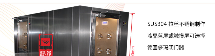 1、外型尺寸(W*D*H):1200mm*1200mm*2180mm;風(fēng)淋區(qū)尺寸(W*D*H):800mm*800mm*1960mm