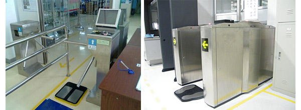 三輥閘,翼渣,進(jìn)入方向配置ESD檢測儀和感應(yīng)讀卡器,刷卡和靜電檢測合格后可以通行一人。外出方向也配置感應(yīng)讀卡器以供公司自行設(shè)定成雙向通道。出口閘機(jī)配置外出感應(yīng)讀卡器,可設(shè)置