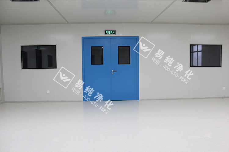 車間內(nèi)部全部采用A1級凈化板材,芯材為琉陽鎂芯材凈化板,地板采用LG品牌PVC防靜電地板,墻體設(shè)置安全門,此安全門為易純專業(yè)定制摁壓式安全門,全透明鋼化玻璃,也是此次工程的一大亮點。頂部采用48W超薄型LED燈具,吸頂安裝,既美觀又節(jié)能。傳遞窗采用雙層中空門,門體嵌入式安裝,內(nèi)底部圓弧設(shè)置無死角。門窗全部采用雙層中空窗及鋼制成品門,帶德國多瑪閉門器。