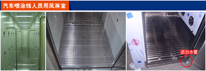2、地板采用格柵處理,底部為不銹鋼接水盤,含進(jìn)水口和出水口;