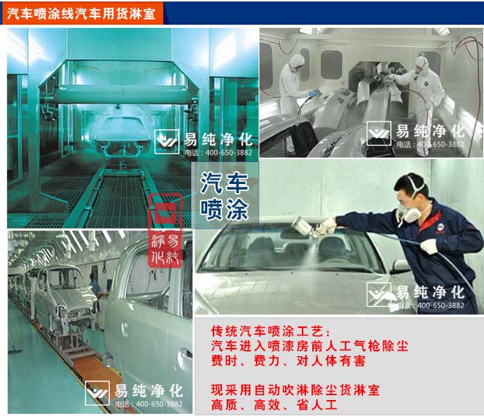 為了保證轎車表面的油漆質(zhì)量,汽車制造廠的涂裝車間(油漆車間)使用大量空氣過濾器,以清除噴漆和烘烤生產(chǎn)線空氣中的粉塵。 噴漆線一般是個(gè)很長(zhǎng)的隧道,一般汽車在進(jìn)入噴漆房之前需要進(jìn)行吹淋,傳統(tǒng)模式為幾位工作人員頭戴防護(hù)罩和防護(hù)口罩采用空氣氣槍進(jìn)行吹淋。但由于此空間的不密封性以及吹出來的灰塵無法及時(shí)過濾和排除,很容易造成二次污染。目前我司可為汽車噴涂行業(yè)設(shè)計(jì)自動(dòng)吹灰流水線,采用三側(cè)吹風(fēng)自動(dòng)與流水線聯(lián)動(dòng)控制,三級(jí)過濾,從而將汽車表面的灰塵吹掉。不僅僅能夠保證將進(jìn)入噴漆房的有面的灰塵去掉,同時(shí)可以保護(hù)工作人員,節(jié)約了員工見崗位的設(shè)置,一年可以節(jié)約大量人員費(fèi)用,是一項(xiàng)綜合優(yōu)勢(shì)明顯的車間生產(chǎn)管理舉措。